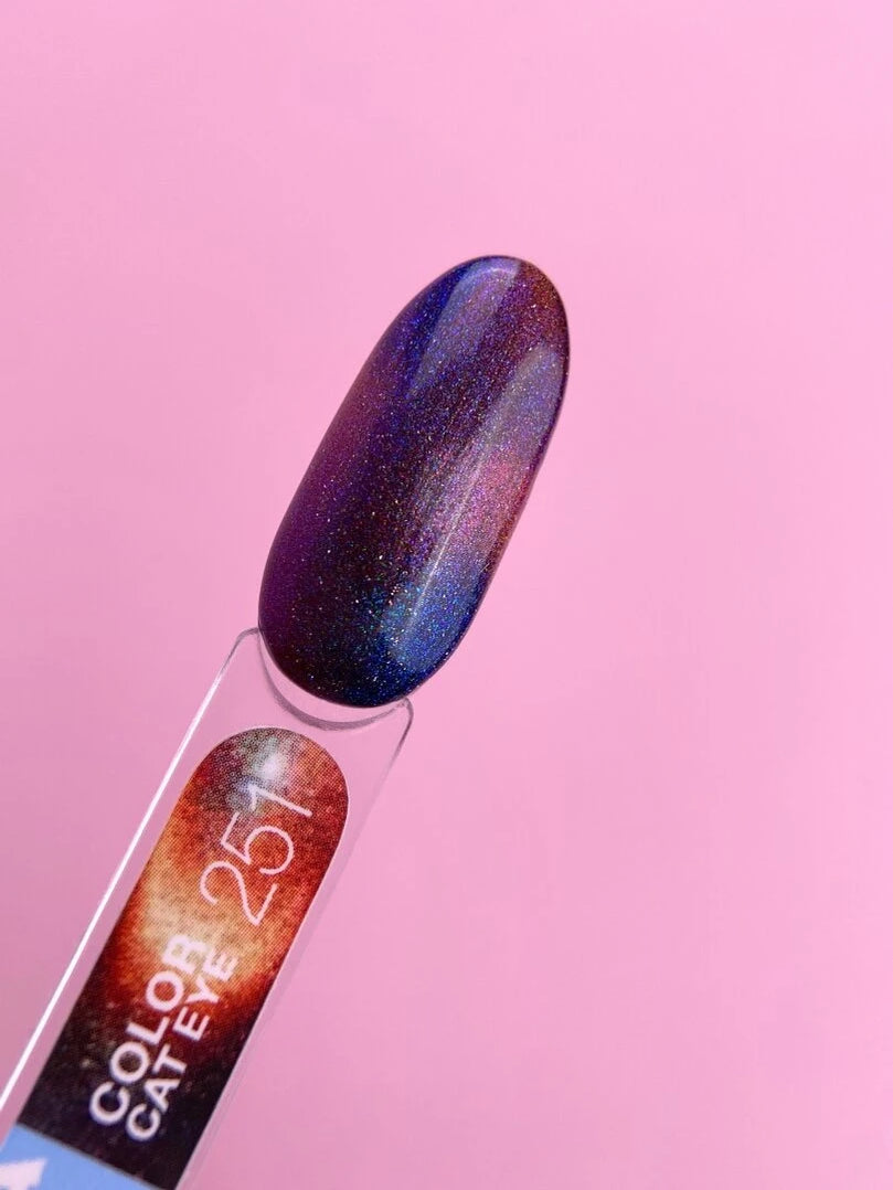 Color Cat Eye Gelpolish ist ein Gelpolish mit dem beliebten „Katzenaugen“-Effekt und einer halbtransparenten, glasartigen Basis.