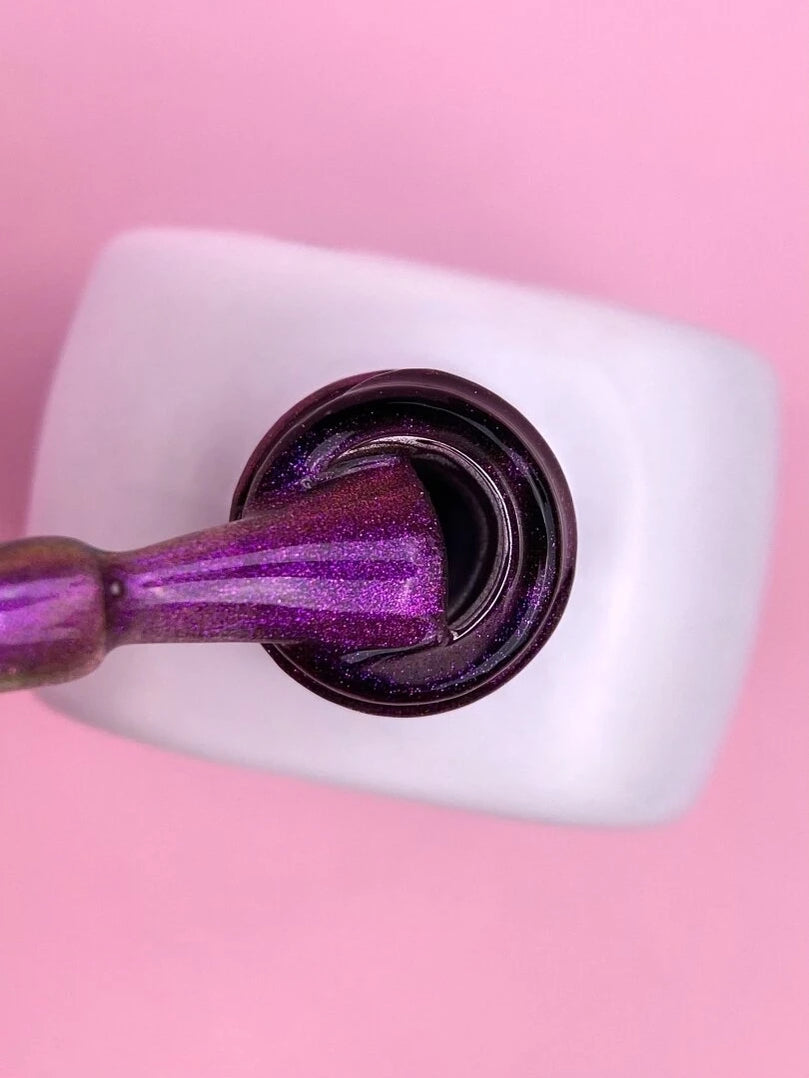 Color Cat Eye №253 is a gel polish with a cat’s eye effect that has a translucent stained glass base.