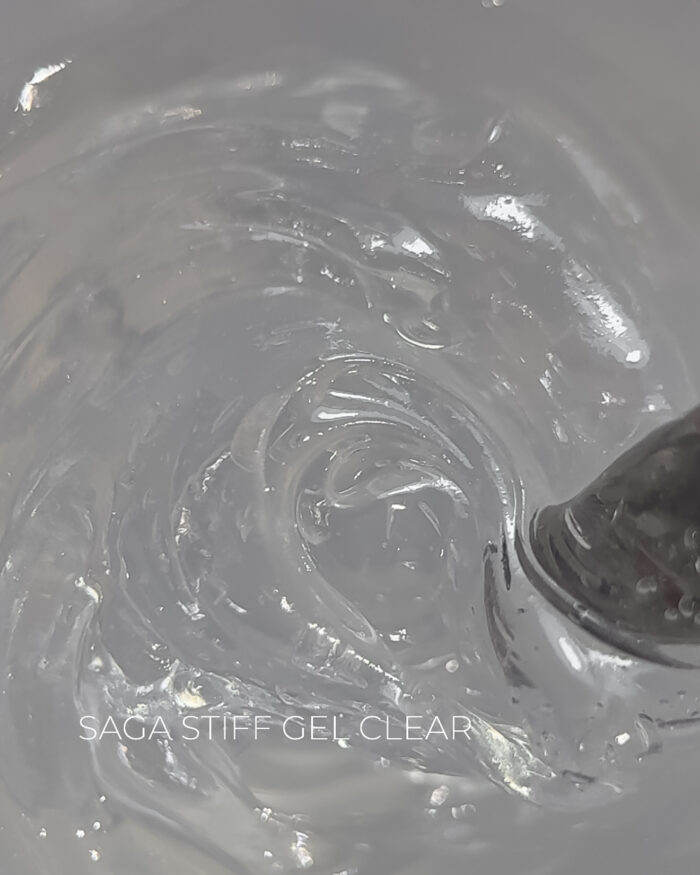 Saga Stiff гель має густу консистенцію, не розтікається, і завдяки такій консистенції він чудово підходить для ремонту нігтів, за допомогою цього гелю можна завершити зламані куточки нігтів або підняти нігті, які ростуть вниз. Гель дуже міцний, що є ще однією чудовою якістю для зміцнення нігтів. Не горить під час полімеризації.