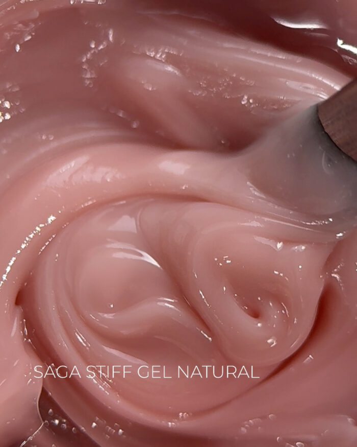 Saga Stiff гель має густу консистенцію, не розтікається, і завдяки такій консистенції він чудово підходить для ремонту нігтів, за допомогою цього гелю можна завершити зламані куточки нігтів або підняти нігті, які ростуть вниз. Гель дуже міцний, що є ще однією чудовою якістю для зміцнення нігтів. Не горить під час полімеризації.